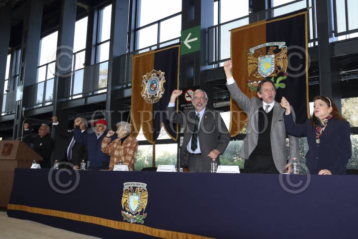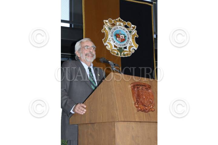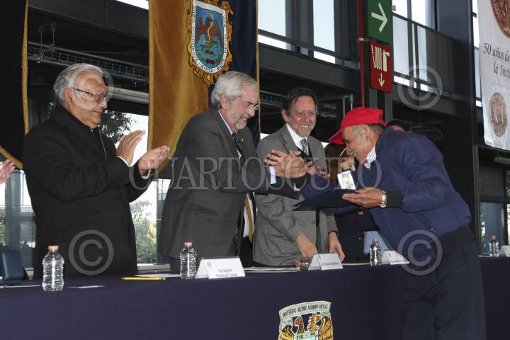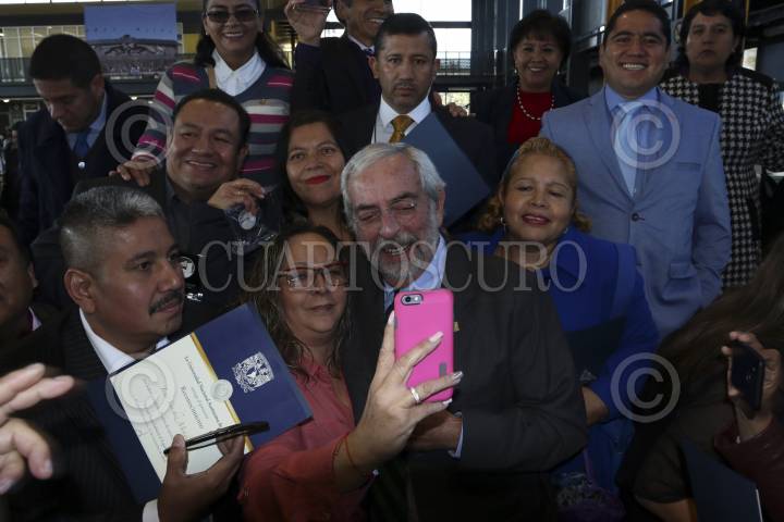 CIUDAD DE MÉXICO, 22NOVIEMBRE2016.- El rector de la Universidad Nacional Autónoma de México, Enrique Graue Wiechers, en compañía del Secretario General del STUNAM, Agustín Rodríguez Fuentes, realizaron la entrega de medallas y reconocimientos a trabajadores por 25 y 50 años de labor universitaria dentro de esta institución. FOTO: ADRIANA ÁLVAREZ /CUARTOSCURO.COM