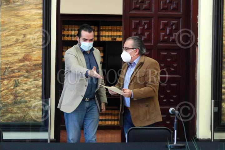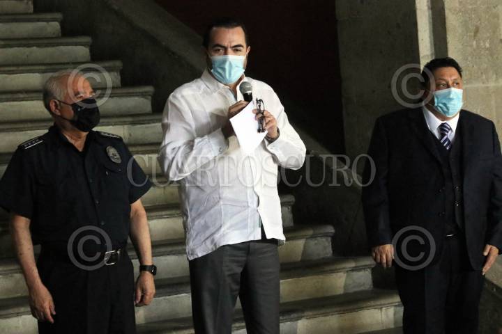Conferencia de prensa de Pablo Ojeda, secretario de Gobierno de Morelos, el comisionado de Seguridad Antonio Ortiz y el fiscal de Justicia Uriel Carmona.