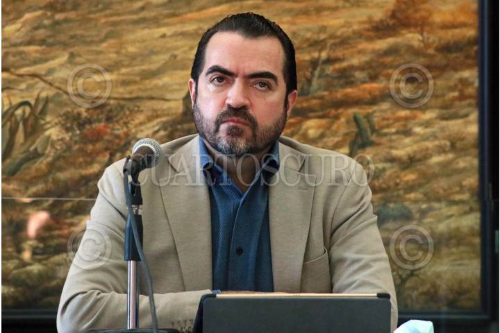 CUERNAVACA, MORELOS, 11DICIEMBRE2024.- Conferencia semanal del tema de seguridad publica, encabezada por el secretario de Gobierno, Juan Salgado Brito y Miguel Ángel Urrutia, titular de la Secretaria de Seguridad y Protección Ciudadana, acompañados de los mandos del Ejercito, Guardia Nacional y de la Fiscalía de Justicia. En la conferencia se amplio la información sobre el secuestro de una reconocida chef, en ese orden el operativo de ayer en el municipio de Huitzilac y la detención del Director de Vialidad tiene relación con esa averiguación. FOTO: MARGARITO PÉREZ RETANA/CUARTOSCURO.COM