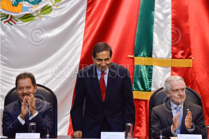 CIUDAD DE MÉXICO, 08SEPTIEMBRE2023.- Rogelio Ramírez de la O, secretario de Hacienda y Crédito Público, entregó el Paquete Económico para el Ejercicio Fiscal 2024 a la Cámara de Diputados. Marcela Guerra, presidenta de la mesa directiva, y Jorge Romero, presidente de la Junta de Coordinación Política (Jucopo) presidieron la recepción en el salón Legisladores de la República del Recinto Legislativo de San Lázaro. FOTO: MARIO JASSO/CUARTOSCURO.COM