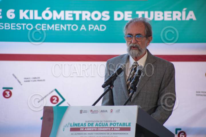 TOLUCA, ESTADO DE MÉXICO, 27FEBRERO2024.- Pedro Moctezuma Barragán Secretario del Agua en el Estado de México encabezó el Arranque del Programa de Sustitución de tubería de líneas de agua potable de asbesto cemento a polietileno de alta densidad en Toluca. FOTO: CRISANTA ESPINOSA AGUILAR /CUARTOSCURO.COM