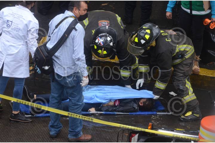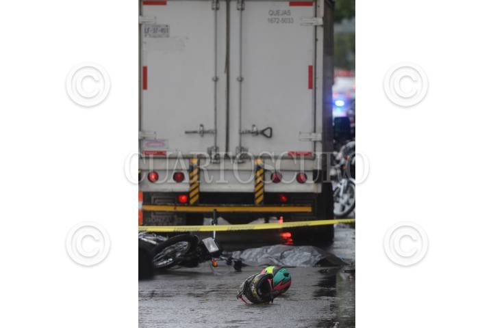 Bomberos de la capital recogen el cadáver de una joven que murió tras impactar su motocicleta con un camión en la alcaldía Coyoacán.