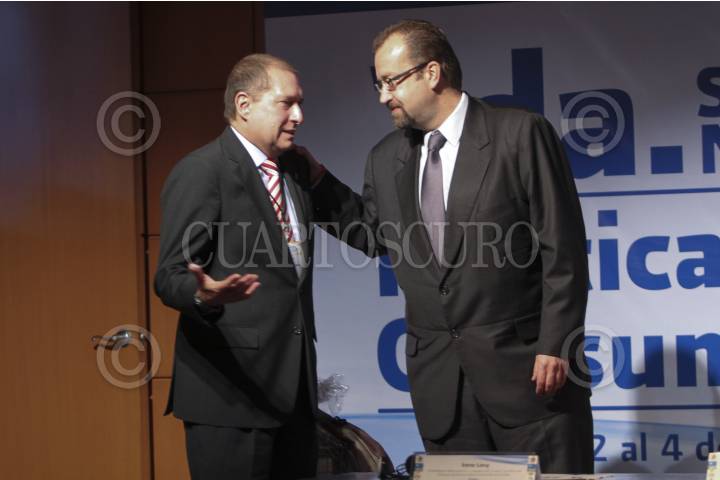 MÉXICO, D.F., 02OCTUBRE2012.- Bernardo Altamirano Rodríguez, Procurador Federal del Consumidor y Mony de Swaand Addati, Comisionado Presidente de la Cofetel, durante la inauguración de la Segunda Semana Nacional de Políticas Pro-Consumidor, que se realiza en el Museo Tecnológico de la Comisión Federal de Electricidad. FOTO: GUILLERMO PEREA /CUARTOSCURO.COM