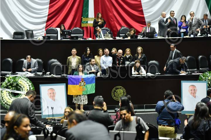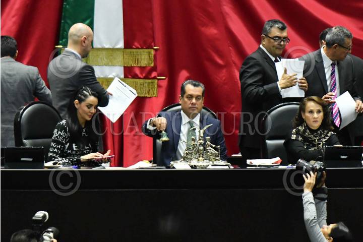 CIUDAD DE MÉXICO, 10DICIEMBRE2024.- Sergio Gutiérrez, presidente de la mesa directiva, acompañado por sus hijos en la segunda sesión ordinaria del día en la que se sometió a discusión el dictamen en materia de plataformas digitales y los dictámenes que expiden la Ley Orgánica del Poder Judicial de la Federación y la Ley de Carrera Judicial. FOTO: MARIO JASSO/CUARTOSCURO.COM