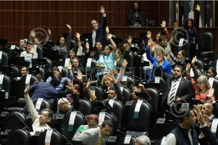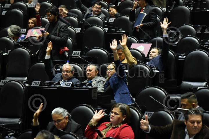 Votación del grupo parlamentario de Morena, durante la sesión de la Cámara de Diputados.