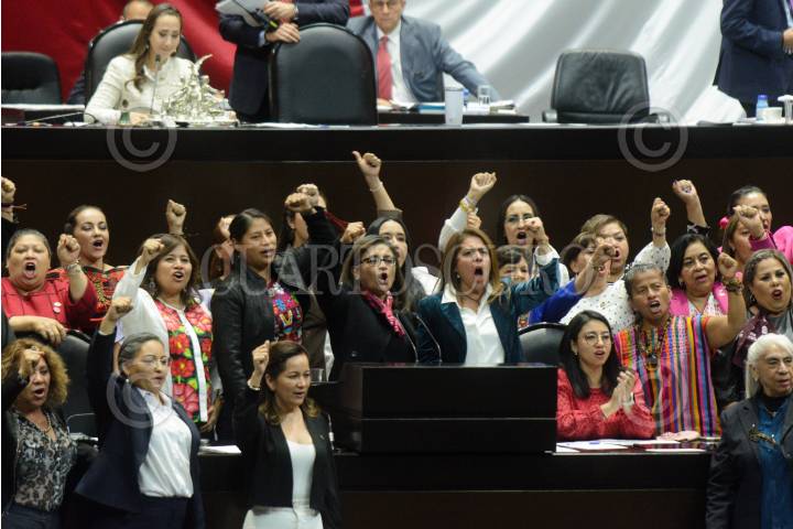 Aleida Alavez Ruiz, diputada de Morena, y legisladoras del mismo grupo parlamentario, comparten su posicionamiento en la discusión del dictamen con el que se reforman y adicionan los artículos 38 y 102 de la Constitución Política de los Estados Unidos Mexicanos en materia de suspensión de derechos para ocupar cargo, empleo o comisión del servicio público.