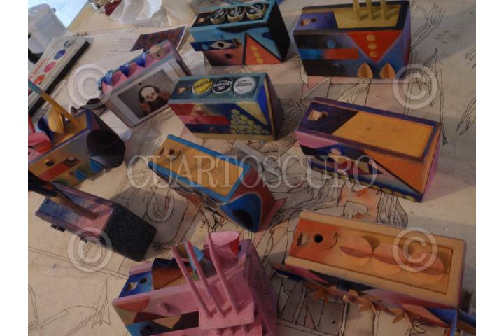 ZACATECAS, ZAC.3JULIO2010.- La fototeca de Zacatecas a propuesta de Carlos Segura Pérez exhibirá el 16 de este mes, una colección de 30 cámaras estenopeicas, fabricadas por carpinteros locales, y que serán intervenidas por varios artistas pláticos del estado y escultores de Jalisco, entre los que destacan Alfonso López Monreal, Jesús Reyes Cordero, José Perez, Rubén Rivera, entre otros. La colección de estas piezas originales. FOTO: ANA LUISA ANZA/CUARTOSCURO.COM