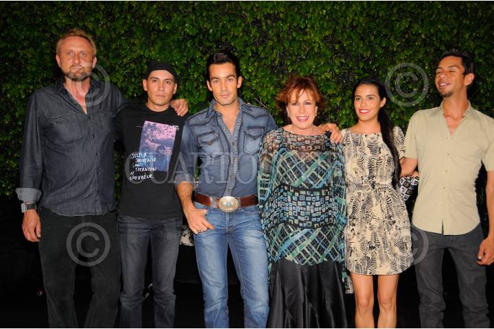 MÉXICO, D.F., 14ABRIL2011.- Los actores Marius Biegai, Héctor Jiménez, Aarón Díaz, Laura Zapata, Olga Segura y el productor Juan Carlos Segura, presentan en conferencia de prensa "Todo un Hombre" opera pirma de Omar Yñigo. FOTO: FRANCISCO RODRIGUEZ/CUARTOSCURO.COM