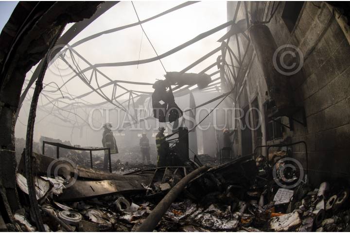 CUATITLAN IZCALLI, ESTADO DE MÉXICO, 16OCTUBRE2012.- Un fuerte incendio en una fabrica de polipropileno se registró en la zona industrial de Cuautitlan Izcalli, lo que provocó fuerte movilización policiaca toda la zona industrial. El incendio afecto tres fabricas más que se encuentran a los alrededores de donde se causó el siniestro. Fuentes extra oficiales manejan a cinco presuntas personas calcinadas. FOTO: JANO RODRÍGUEZ / CUARTOSCURO.COM
