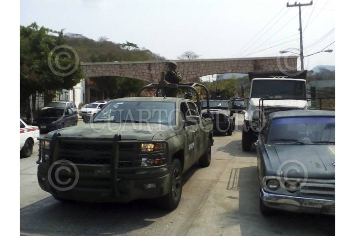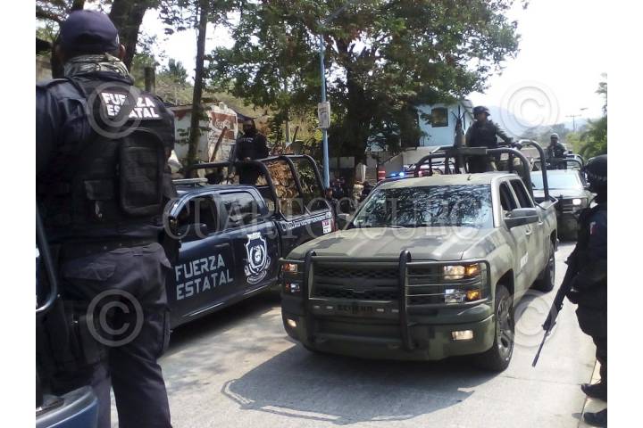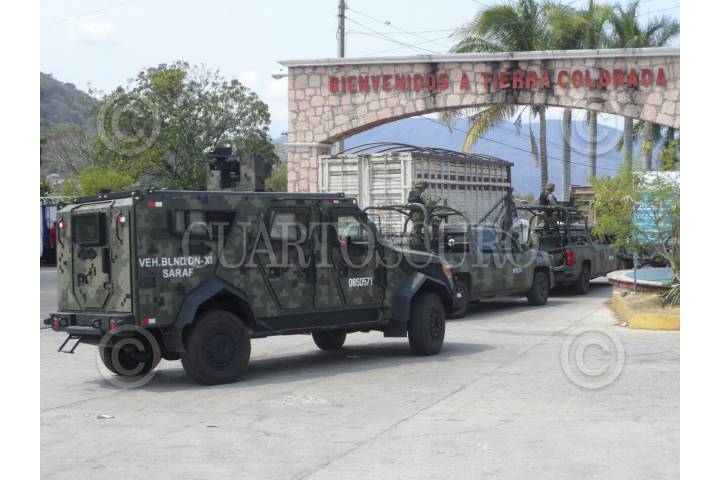 TIERRA COLORADA, GUERRERO, 16MAYO2017.- Elementos de la Policiía Federal y Militares llegaron a este poblado a reforzar la seguridad luego de un presunto enfrentamiento a balazos entre miembros de la Fusdeg y la Upoeg, que dejo como saldo un taxista muerto. FOTO: CUARTOSCURO.COM