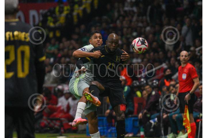 TOLUCA, ESTADO DE MÉXICO, 19NOVIEMBRE2024.- Yustin Arboleda delantero de la Selección de Honduras pelea el esférico ante la Selección Nacional de México en el estadio Nemesio Diez en el juego de vuelta de los Cuartos de Final de la Concacaf Nations League, con un marcador final 4-0 global 4-2. FOTO: CRISANTA ESPINOSA AGUILAR/ CUARTOSCURO.COM