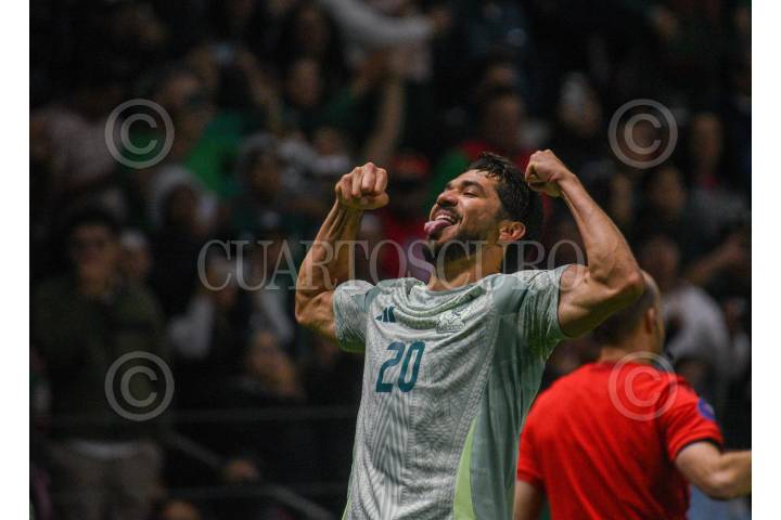 TOLUCA, ESTADO DE MÉXICO, 19NOVIEMBRE2024.- Raúl Jiménez delantero de la Selección Nacional de México festeja su anotación ante la Selección de Honduras en el juego de vuelta de los Cuartos de Final de la Concacaf Nations League, con un marcador final 4-0 global 4-2. FOTO: CRISANTA ESPINOSA AGUILAR/ CUARTOSCURO.COM