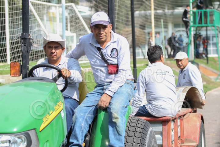 CIUDAD DE MÉXICO, 11NOVIEMBRE2019.- La Selección Mexicana de futbol realizo entrenamiento de regeneración en las instalaciones del Centro de Alto Rendimiento, esto previo al encuentro contra su similar de Panamá. En imagen trabajadores de mantenimiento de las canchas del CAR recorren los pasillos sobre un tractor. FOTO: ROGELIO MORALES /CUARTOSCURO.COM