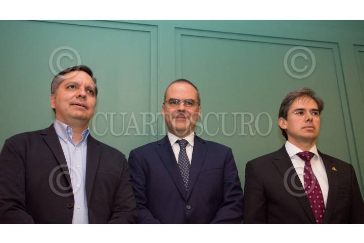 CIUDAD DE MÉXICO, 05ABRIL2017.- Gustavo de Hoyos, presidente de la Confederación Patronal de la República Mexicana (COPARMEX); Eduardo Bohórquez, director general de Transparencia Mexicana, y Juan E. Pardinas, director general del Instituto Mexicano para la Competitividad (IMCO), ofrecieron una conferencia de prensa para presentar los avances del proyecto "Semáforo anti-corrupción", el cual monitorea a los estados en la implementación de los Sistemas Locales Anticorrupción. FOTO: MARIO JASSO /CUARTOSCURO.COM