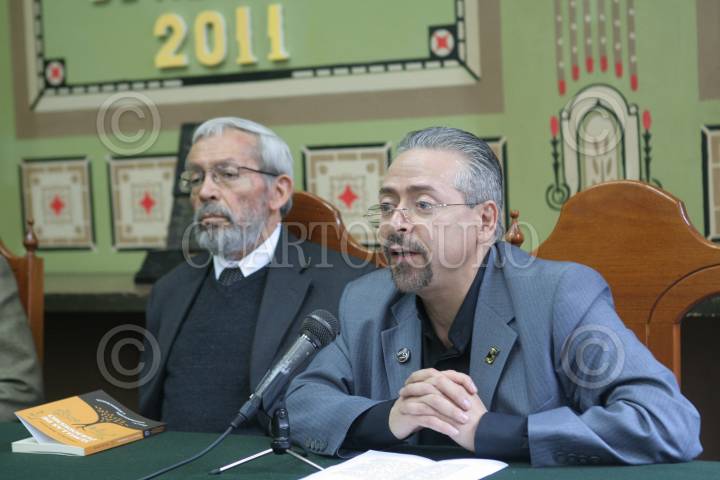 MÉXICO, 24FEBRERO2011.- Omar Raúl Martínez, autor del libro "Semilla de Periodismo", durante la presentación de su más reciente obra en la que asistió como invitado el periodista Miguel Ángel Granados Chapa. FOTO: MOISÉS PABLO/CUARTOSCURO.COM