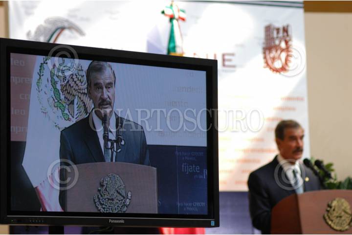 MÈXICO, D.F. 14NOVIEMBRE2005.- El presidente, Vicente Fox; el secretario de Educación, Reyes Tamez Guerra y el director del Instituto Politécnico Nacional, Jose Enrique Villa Rivera durante la Entrega de Capital Semilla a Emprendedores en la Unidad Politécnica para la competitividad y el desarrollo empresarial. FOTO: Miriam Sánchez/CUARTOSCURO.COM
