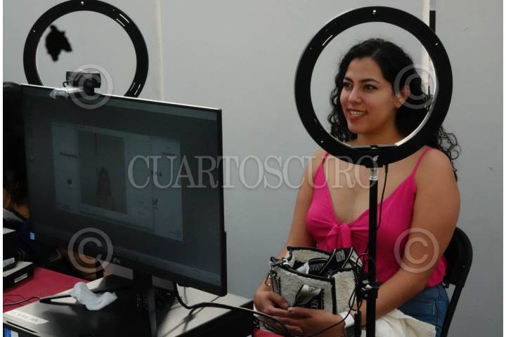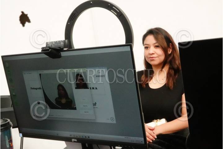 CIUDAD DE MÉXICO, 16NOVIEMBRE,2024.- Una mujer durante la la toma de fotografia para su Licencia Permanente, en el macromódulo instalado por la Secretaria de Movilidad (Semovi) en Ciudad Deportiva, Magdalena Mixhuca. FOTO: MAGDALENA MONTIEL/CUARTOSCURO.COM