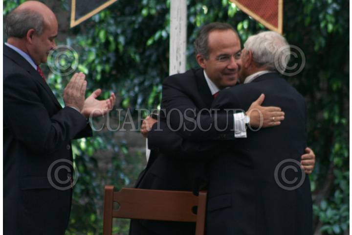 MÉXICO, D.F. MARZO2007.- El presidente Felipe Calderón Hinijosa visitó el Instituto Panamaericano de Alta Dirección de Empresa en su 40 aniversario. En la imagen con Manuel Senderos Irigoyen, presidente director de la junta de gobierno de dicha institución. FOTO: PAOLA HIDALGO/CUARTOSCURO.COM