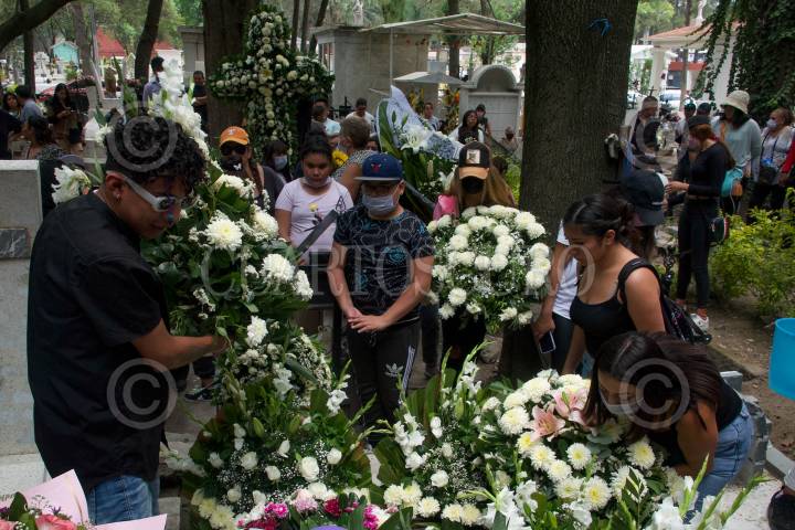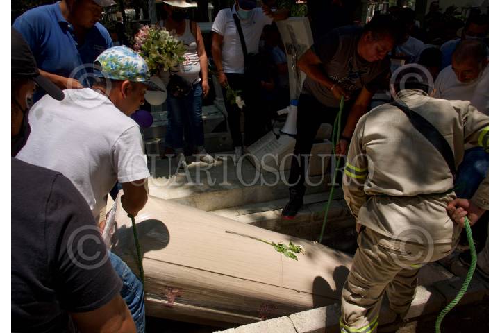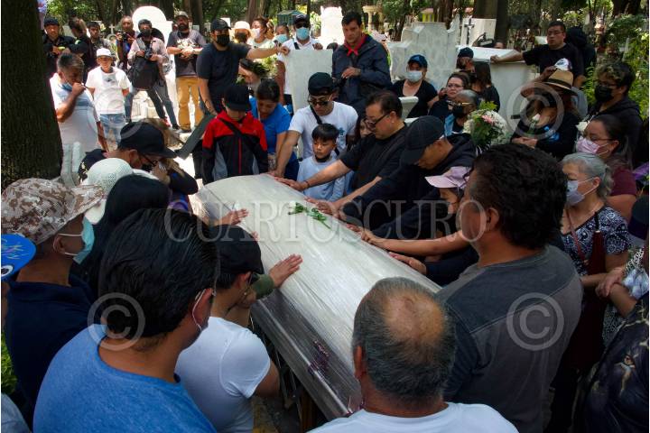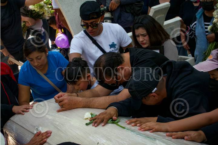 Familiares y amigos durante el sepelio de Perla Cristal en Panteón Xilotepec.