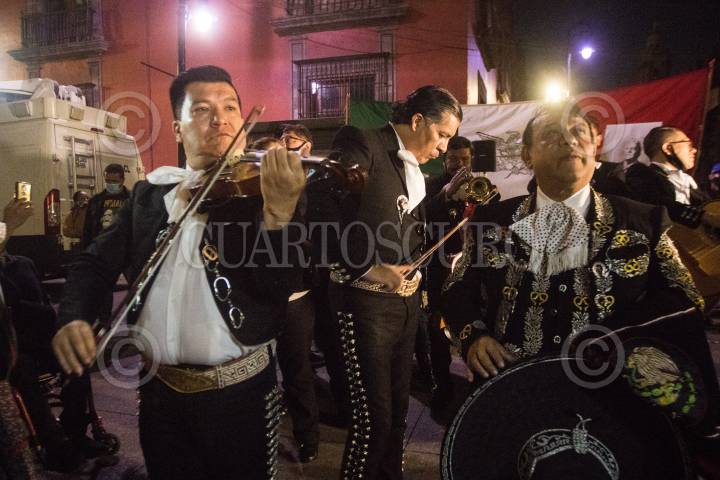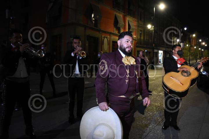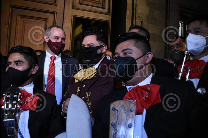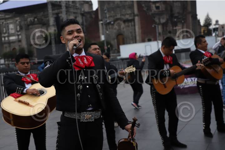 CIUDAD DE MÉXICO, 30SEPTIEMBRE2024.- Un grupo de mariachis fue invitado para dedicarle distintas canciones a Andrés Manuel López Obrador. FOTO: DANIEL AUGUSTO/ CUARTOSCURO.COM