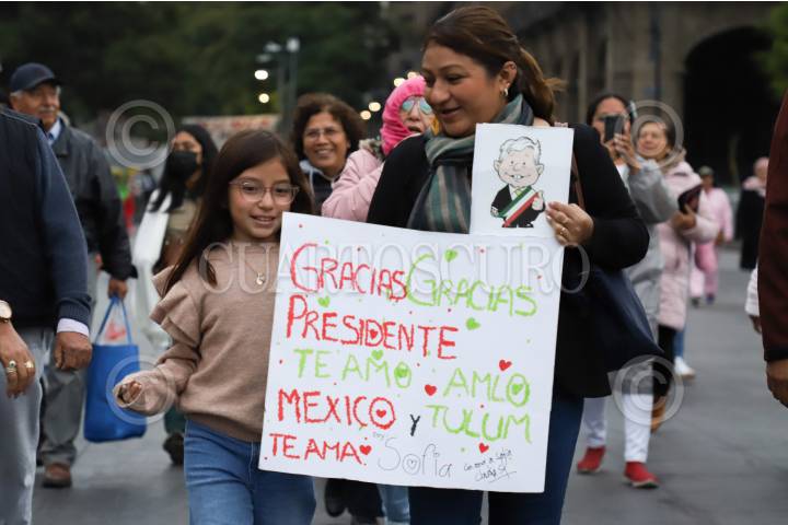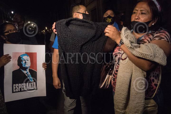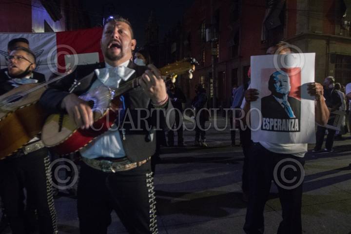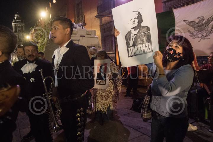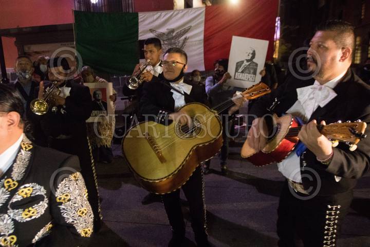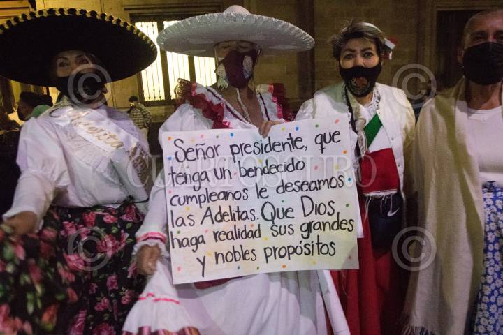Simpatizantes de Andrés Manuel López Obrador, Presidente de México; se congregaron en las afueras de Palacio Nacional, para traerle serenata previo al cumpleaños del primer mandatario.