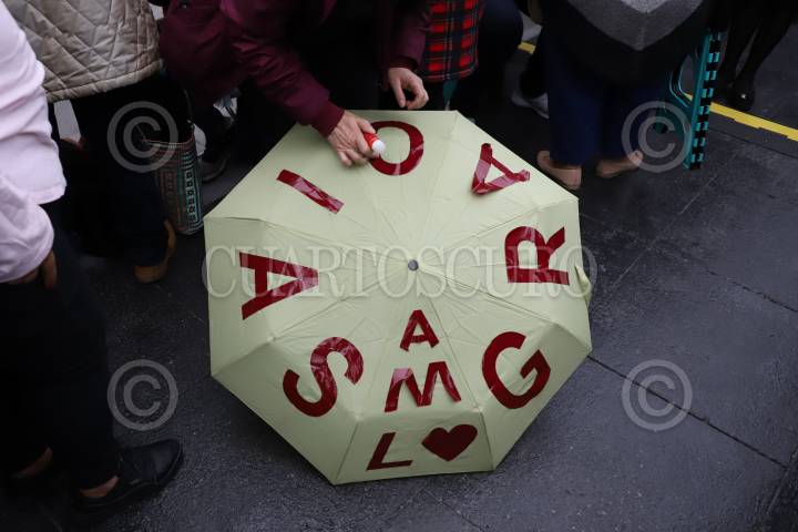 CIUDAD DE MÉXICO, 30SEPTIEMBRE2024.- Una simpatizantes coloca la leyenda "Gracias AMLO" en su paraguas. FOTO: DANIEL AUGUSTO/ CUARTOSCURO.COM