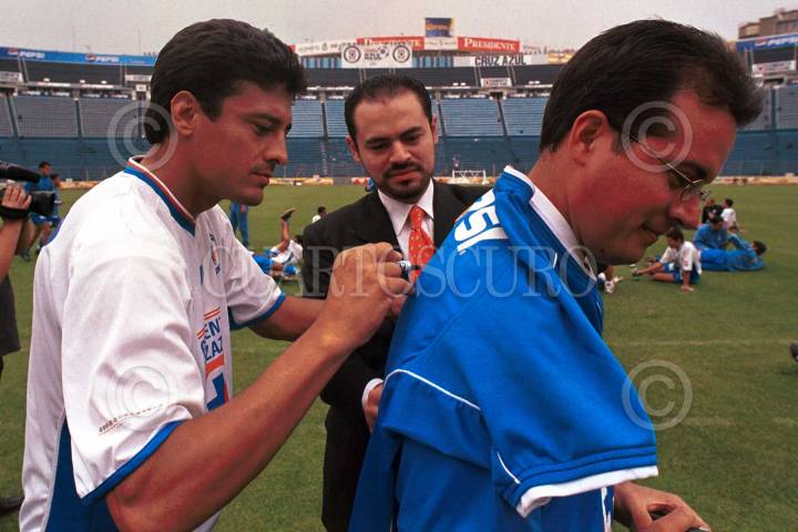 Sergio Almaguer y José Saturnino Cardoso fueron presentados esta mañana como refuerzos de la Máquina Cementera de Cruz Azul que se prepara para sus próximos partidos de la Copa Libertadores. FOTO: Pedro Mera/CUARTOSCURO.COM