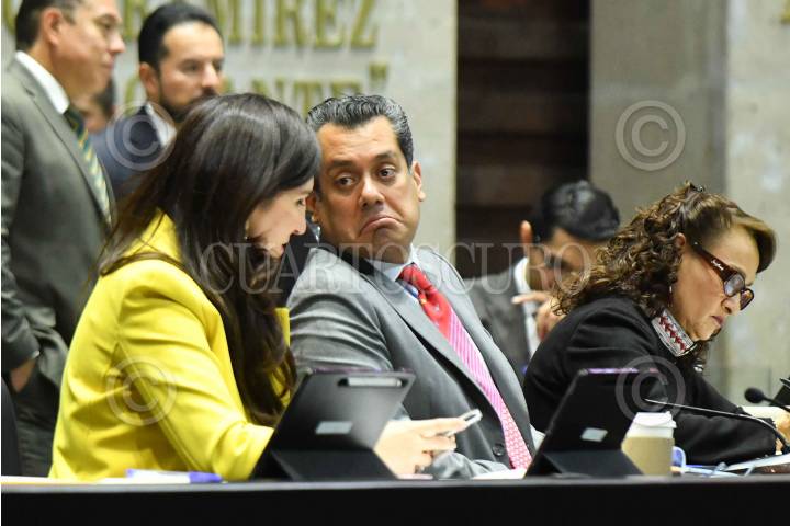 CIUDAD DE MÉXICO, 03DICIEMBRE2024.- Sergio Gutiérrez, presidente de la mesa directiva, junto a las vicepresidentas: Kenia López Rabadán, y Dolores Padierna, durante la sesión ordinaria de la Cámara de Diputados, en la que se discute el dictamen en materia de protección a la salud, la cual prohíbe el uso de vapeadores y el uso ilícito de fentanilo. FOTO: MARIO JASSO/CUARTOSCURO.COM