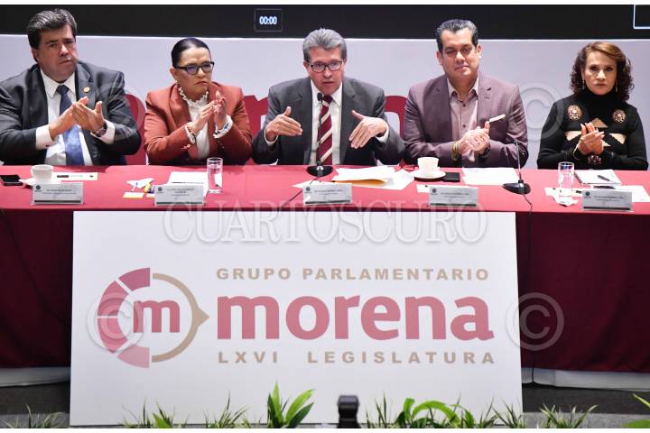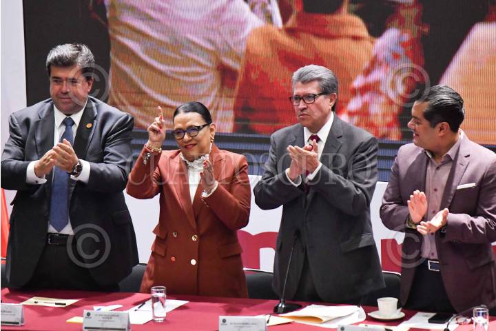CIUDAD DE MÉXICO, 31ENERO2025.- Rosa Icela Rodríguez, secretaria de Gobernación; Ricardo Monreal, diputado y coordinador del grupo parlamentario de Morena en la Cámara Baja; Sergio Gutiérrez, presidente de la mesa directiva, y Dolores Padierna, diputada, durante la apertura de la segunda reunión plenaria del grupo parlamentario de Morena previo al segundo periodo de sesiones ordinarias de la LXVI Legislatura, realizada en el Auditorio Aurora Jiménez de la Cámara de Diputados. FOTO: MARIO JASSO/CUARTOSCURO.COM