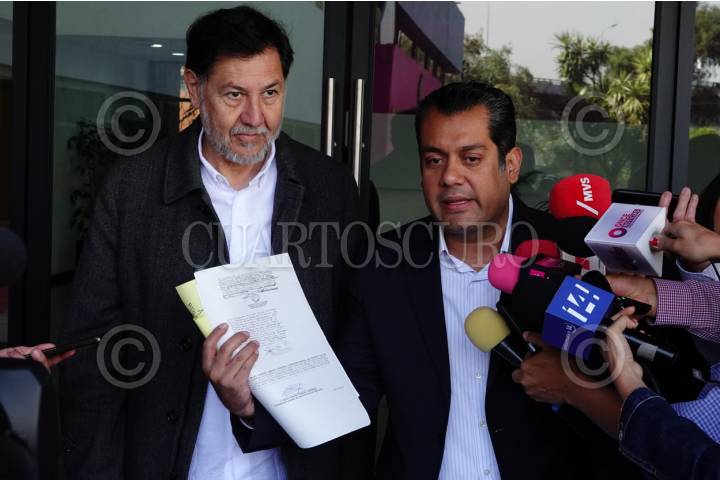 CIUDAD DE MÉXICO, 27FEBRERO2024.- Gerardo Fernández Noroña y Sergio Gutiérrez presentaron en el Instituto Nacional Electoral supuestas pruebas para detener la candidatura de Francisco García Cabeza de Vaca ex gobernador de Tamaulipas en la sede del instituto. FOTOS: ROGELIO MORALES /CUARTOSCURO.COM