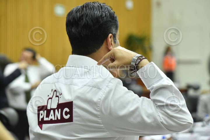 CIUDAD DE MÉXICO, 05SEPTIEMBRE2024.- Sergio Gutiérrez, diputado y representante de Morena ante el INE, porta una camisa con las palabras "Plan C" durante la sesión extraordinaria del Consejo General del Instituto Nacional Electoral (INE) en la que se determinará la anulación de la votación en la alcaldía Álvaro Obregón en donde presuntamente se rebasaron los topes de gasto de campaña por parte de Joaquín López Casarín candidato por Morena, PVEM y PT. FOTO: MARIO JASSO/CUARTOSCURO.COM