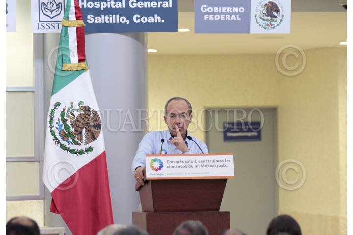 SALTILLO, COAHUILA, 26NOVIEBRE2012.-En la gira de despedida como Presidente de la República, Felipe Calderón inauguró el Hospital General del ISSSTE acompañado del Gobernador del Estado, Ruben Moreira; Salomón Chertorivski, Secretario de Salud Federal, y Sergio Hidalgo Monroy, director general del ISSSTE y autoridades estatales. FOTO: KARLA ITZEL RUÍZ /CUARTOSCURO.COM