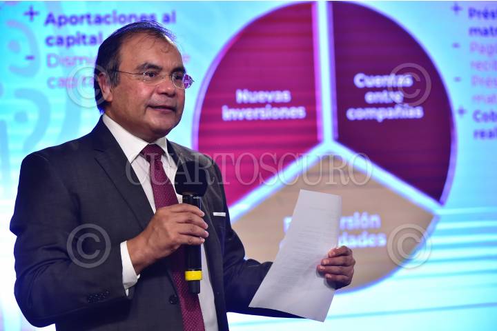 Sergio Silva Castañeda, Profesor del Departamento Académico de Estudios Internacionales del ITAM; Alejandro Rosas Guerrero, jefe de la Unidad de Prospectiva, Planeación y Evaluación de la Secretaría de Economía, durante la conferencia de Economía en Palacio Nacional