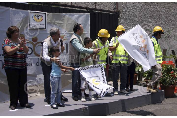 MÉXICO, D.F., 01JUNIO2013.- El Jefe de Gobierno del Distrito Federal Miguel Ángel Mancera y Sergio Palacios Trejo, delegado de Azcapotzalco, dio inicio al Programa de Reencarpetamiento con Presupuesto Participativo en las calles del Pueblo Santiago Ahuizotla, de la mencionada demarcación. FOTO: CUARTOSCURO.COM