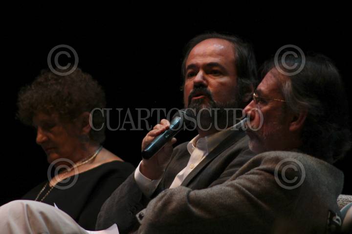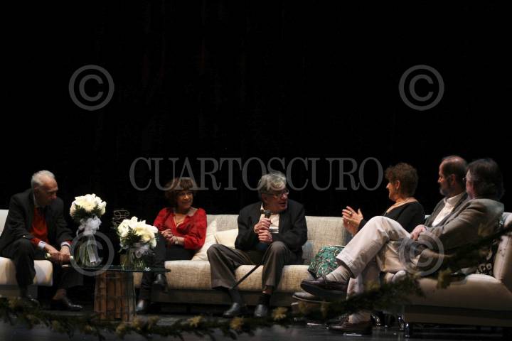 OAXACA, OAXACA, 01NOVIEMBRE2012.- El escritor y poeta mexicano, José Emilio Pachecho recibió la noche de este jueves un homenaje por su trayectoria y aportación a la literatura mexicana en el marco de la 32º Feria Internacional del Libro de Oaxaca (FILO). Dicho acto se realizó en el teatro Macedonio Alcalá y contó con la presencia de los escritores, Margo Glantz, Sergio Pitol y Juan Villoro. FOTO: ARTURO PÉREZ ALFONSO /CUARTOSCURO.COM
