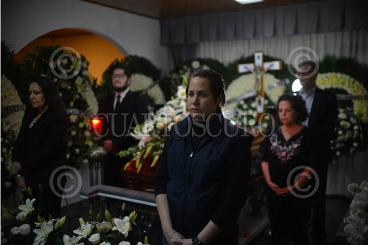 XALAPA, VERACRUZ, 12ABRIL2018.- Los restos del escritor poblano Sergio Pitól Deméneghi son velados esta tarde en la funeraria Bosques del Recuerdo en la capital del estado de Veracruz, asisten y montan guardia de honor Lidia Camacho directora de Bellas Artes así como Laura Deméneghi sobrina del escritor y familiares. FOTO: ALBERTO ROA /CUARTOSCURO.COM