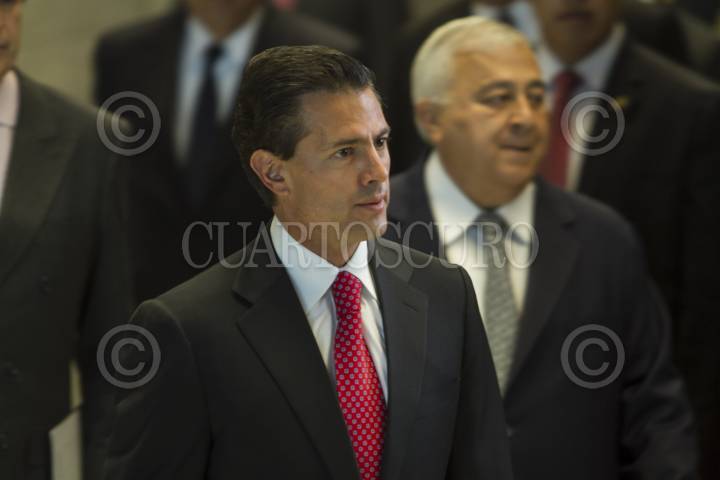 MÉXICO, D.F., 23FEBRERO2015.- Enrique Peña Nieto , presidente de los Estados Unidos Mexicanos y Emilio Chuayffet, secretario de Educación pública, a su llegada al Museo de Antropología para la ceremonia de entrega del Premio Internacional Carlos Fuentes. FOTO: ISABEL MATEOS /CUARTOSCURO.COM
