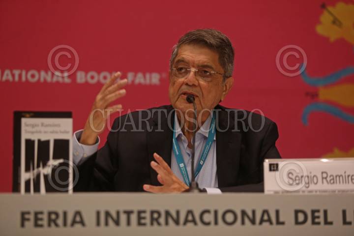 Sergio Ramírez escritor nicaragüense, durante la presentación de su libro, esta tarde en expo Guadalajara.