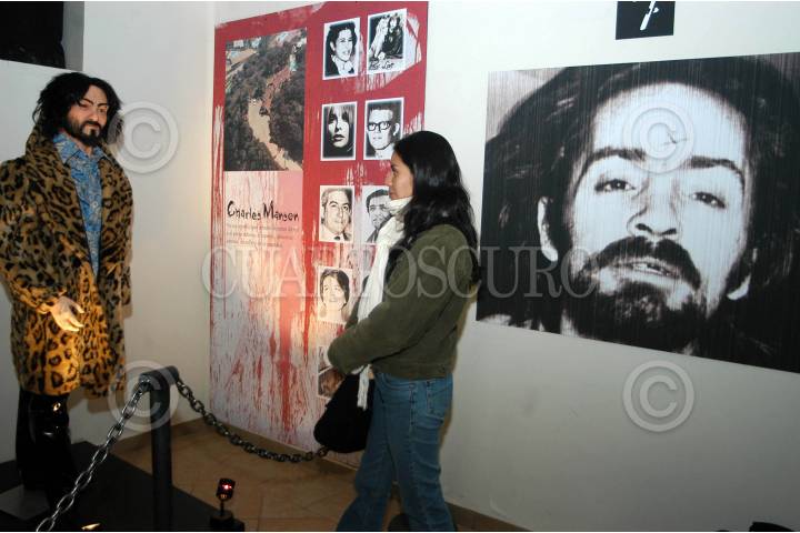 MÉXICO D.F. 23NOVIEMBRE2006.- En el Museo del Policia, ubicado entre las calles de Revillagigedo y Victoria en el Centro Histórico, se presenta la exposición "Asesinos Seriales y Pena de Muerte" que muestra a los asesinos seriales más reconocidos en el mundo. Una visitante observa la galeria dedicada a Charles Manson, famoso asesino en los años 60´s en los Estados Unidos. FOTO: GERMÁN ROMERO/CUARTOSCURO.COM