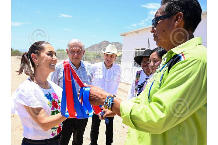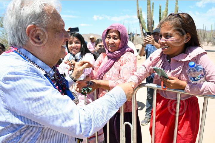 Andrés Manuel López Obrador, Presidente de México, y Alfonso Durazo, gobernador de Sonora, encabezaron la presentación de Desarrollo Integral del Pueblo Seri.