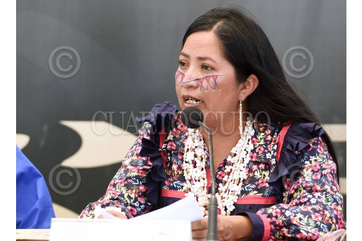 PITIQUITO, SONORA, 06JULIO2024.- María Luisa Astorga Flores, consejera de Ancianos Comca’ac, durante la presentación del Plan de Justicia para el Pueblo Seri - Comca’ac en el pozo Santa Rosa. Estuvieron acompañados por: Janeth Mazón García, presidenta municipal de Pitiquito, Sonora; Enrique Robles Barnett, presidente del Consejo de Ancianos de la Nación Comca'ac; Germán Arturo Martínez Santoyo, director general de la Comisión Nacional del Agua (Conagua); Edna Elena Vega Rangel, subsecretaria de Ordenamiento Territorial y Agrario de la Secretaria de Desarrollo Agrario, Territorial y Urbano y responsable del “Programa de Vivienda”; Adelfo Regino Montes, director general del Instituto Nacional de los Pueblos Indígenas; José Rafael Ojeda, secretario de Marina; Alfonso Durazo, gobernador de Sonora; Rey Aldino Morales Romero, delegado municipal de Punta Chueca del municipio de Hermosillo, Sonora; Gabriela Molina Moreno, regidora Étnica de El Desemboque; Juan Pablo de Botton Falcón, subsecretario de Egresos de la Secretaría de Hacienda y Crédito Público; Octavio Alberto Almada Palafox es el titular de la Comisión Nacional de Acuacultura y Pesca, y Alberto Mellado Moreno, regidor étnico de Punta Chueca. FOTO: PRESIDENCIA/CUARTOSCURO.COM