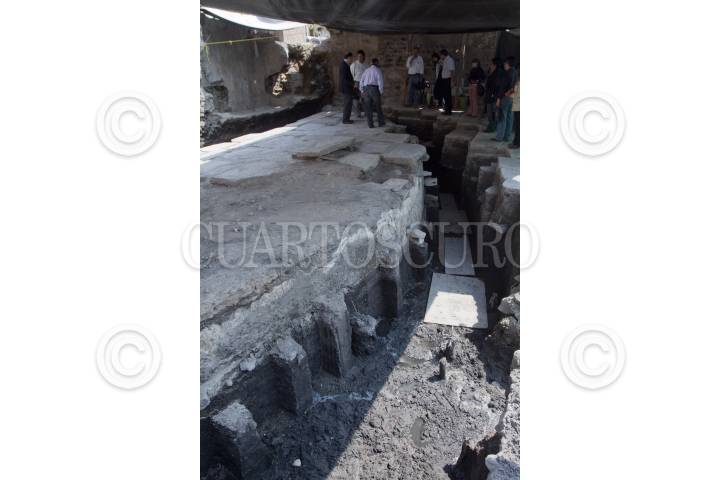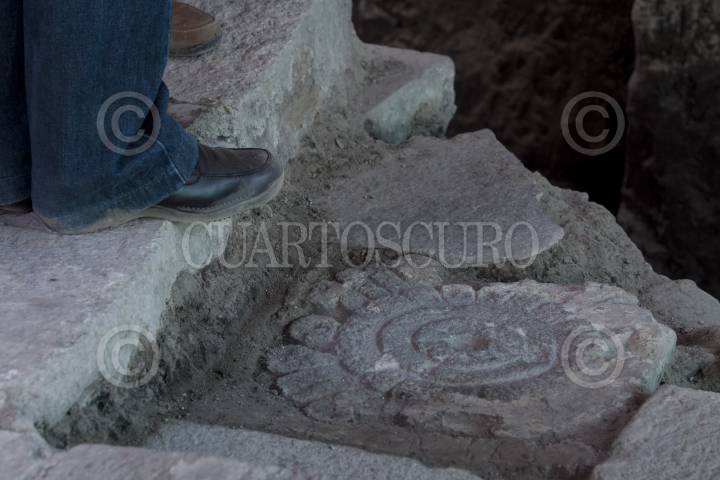 MÉXICO, D.F., 05OCTUBRE2011.- Una plataforma circular de aproximadamente 15 metros de diámetro en la que se encuentran incrustadas cabezas de serpiente fue descubierta en el Templo Mayor, el cual es considerado uno de los descubrimientos más importantes de los últimos años. FOTO: RODOLFO ANGULO/CUARTOSCURO.COM