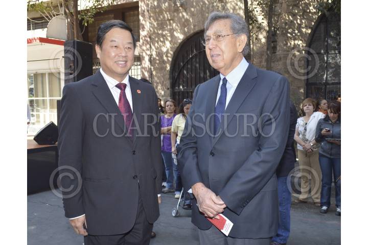 MÉXICO, D.F., 09FEBRERO2012.- Se inauguraron los festejos del nuevo año chino "año de la serpiente y la sabiduría", en el Barrio Chino, ubicado en las calles de Independencia y Dolores, colonia Centro. En la imagen el embajador chino Zeng Gang y Cuauhtémoc Cárdenas, coordinador de asuntos internacionales del GDF. FOTO: MOISÉS PABLO /CUARTOSCURO.COM