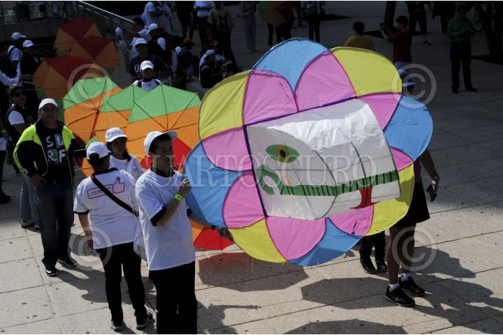 CIUDAD DE MÉXICO 29MAYO2016.- En la explanada del monumento a la Revolución, integrantes del Instituto Electoral del Distrito Federal, elevaron un papalote monumental con forma de Xiuhcóatl, una serpiente de fuego que era el arma poderosa de la cultura Mexica y representa los orígenes de la capital del país, la cual es el emblema de difusión de la elección de la Asamblea Constituyente para el domingo 5 de junio, esto para promover el voto entre los ciudadanos. FOTO: DIEGO SIMÓN SÁNCHEZ /CUARTOSCURO.COM
