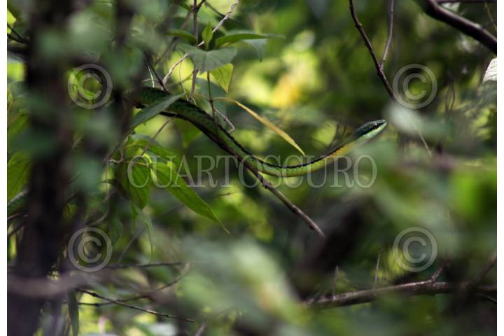 TEPOZTLÁN, MORELOS, 05AGOSTO2018.- Una serpiente color verde se oculta entre la maleza de la selva baja de la Reserva Estatal El Texcal. FOTO: MARGARITO PÉREZ RETANA /CUARTOSCURO.COM