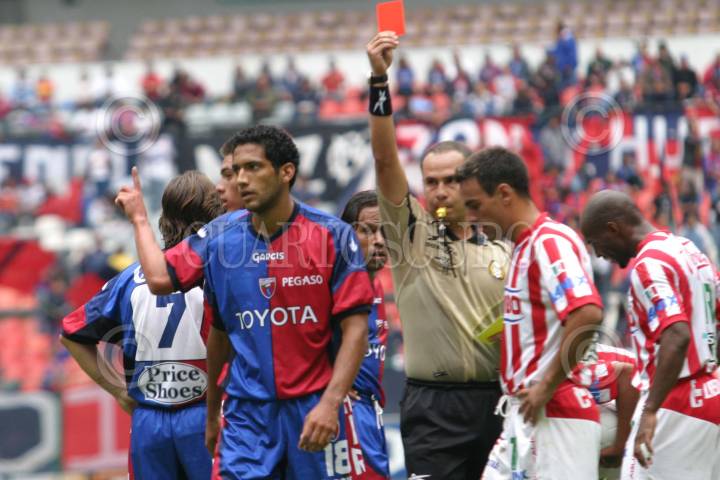 MEXICO, D.F. 20AGOSTO2005.- Angel Servando García defensa del Atlante es expulsado en el encuentro contra los Rayos del Necaxa, en la jornada 4 del torneo de apertura 2005. Atlante venció 2 goles a 1 a los rayos del Necaxa. FOTO: Nelly Salas/CUARTOSCURO.COM