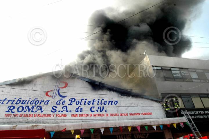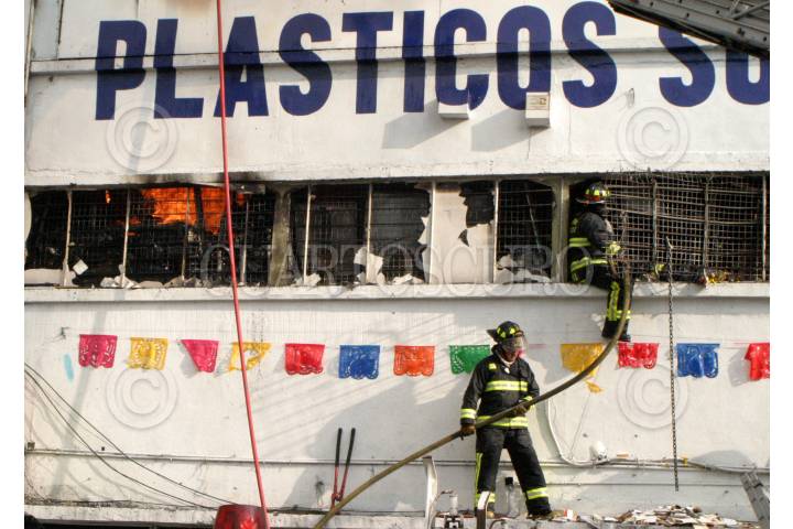 MÉXICO, D.F., 05FEBRERO2009.- Elementos de Bomberos de varias Delegaciones acudieron al apoyo para sofocar el incendio que se registro en un local con razón social Comercializadora de Plásticos S.A. de C.V. que se ubica en Avenida Fray Servando entre las calles de Circunvalación y Congreso de la Unión en la colonia Merced perímetro de la Delegación Venustiano Carranza. FOTO: JULIETA MORA/CUARTOSCURO.COM