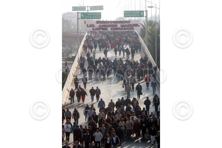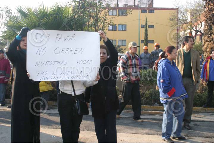 México, D. F.,12ENERO2004.- Vecinos de las colonias aledañas al distribuidor víal de Zaragoza, se manifestaron en contra de estas obras, durante la inauguración del puente de Fray Sevando y Troncoso, en la delegación Venustiano Carranza. FOTO: Moisés Pablo/CUARTOSCURO.COM