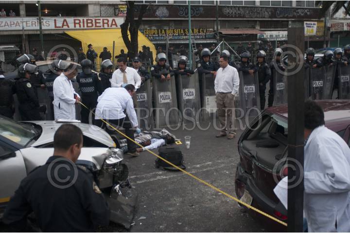 MÉXICO, D.F., 29JUNIO2014.- Una patrulla de Tránsito del Distrito Federal placas T11-16 chocó contra un automóvil particular donde resultaron lesionados 4 integrantes de una familia que iban al interior del vehículo. Además, atropelló a un ciclista que murió en el lugar. Los hechos ocurrieron en la avenida Fray Servando y Circunvalación a un costado del mercado de Sonora, en la delegación Venustiano Carranza. FOTO: IVÁN STEPHENS /CUARTOSCURO.COM