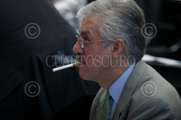 MÉXICO D.F., 11MARZO2009.- El senador Ricardo Garcia Cervantes fuma un cigarrillo electrónico durante la sesión del dia de hoy. FOTO: RICARDO CASTELAN/CUARTOSCURO.COM